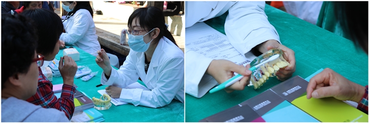 醫(yī)生同時對群眾提出的疑問進行解答,認真仔細地檢查了每個人的口腔,針對他們存在的口腔疾病給出了專業(yè)的預防和治療建議,同時發(fā)放口腔科普宣傳資料,通過牙齒模型的展示,向群眾普及口腔疾病的特征、危害、預防的方法及正確的刷牙方法等知識。